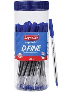 The Reynolds DFINE Ballpens are high-quality pens with a simple and ageless design that provide a smooth and effortless writing experience. Its easy-flowing high-quality ink glides flawlessly and evenly through its 0.7mm tip and offers precise and defined writing. It is durable and ideal for fast writing.Reynolds D FINE is available in BLUE ink colour only. With high-quality finishes that focus on comfort and high performance, it assure a defined and incredible writing experience.